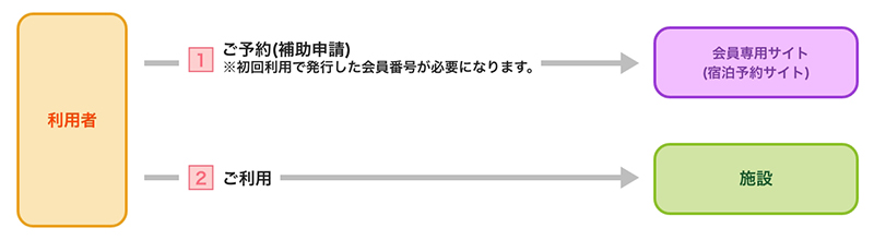※上記方法以外での予約(他旅行会社、宿泊予約サイト等)は補助対象外となります。
